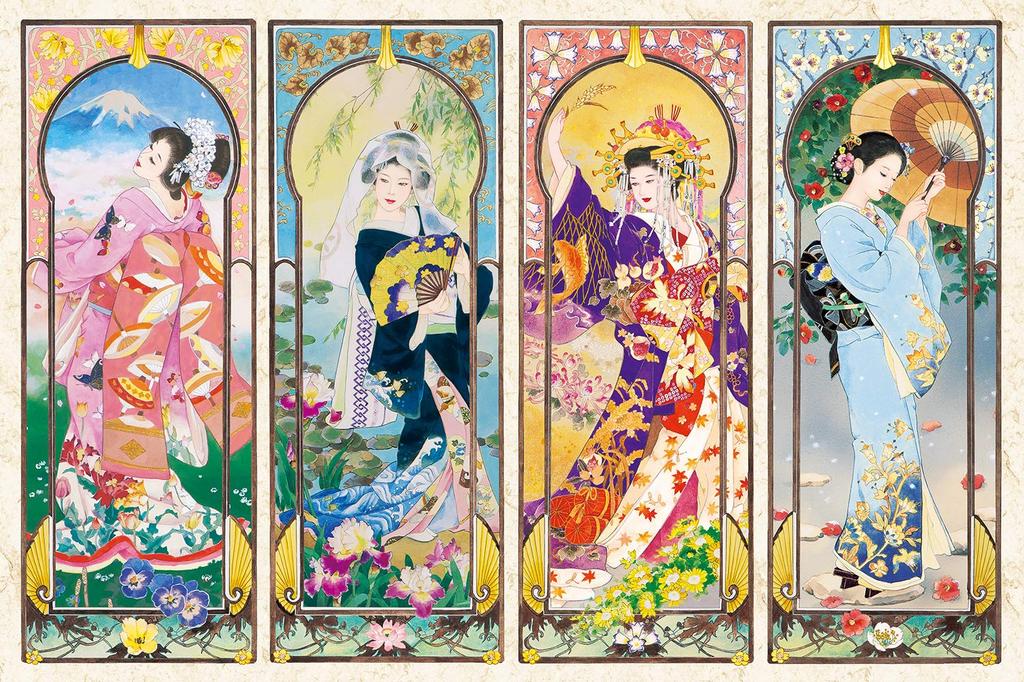Epoch 2016 Very Small Piece Jigsaw Puzzle Four Seasons Beauty with and Score Ticket Illustration/Art Haruyo, (50x75cm) 23-321s Glue, Spatula,