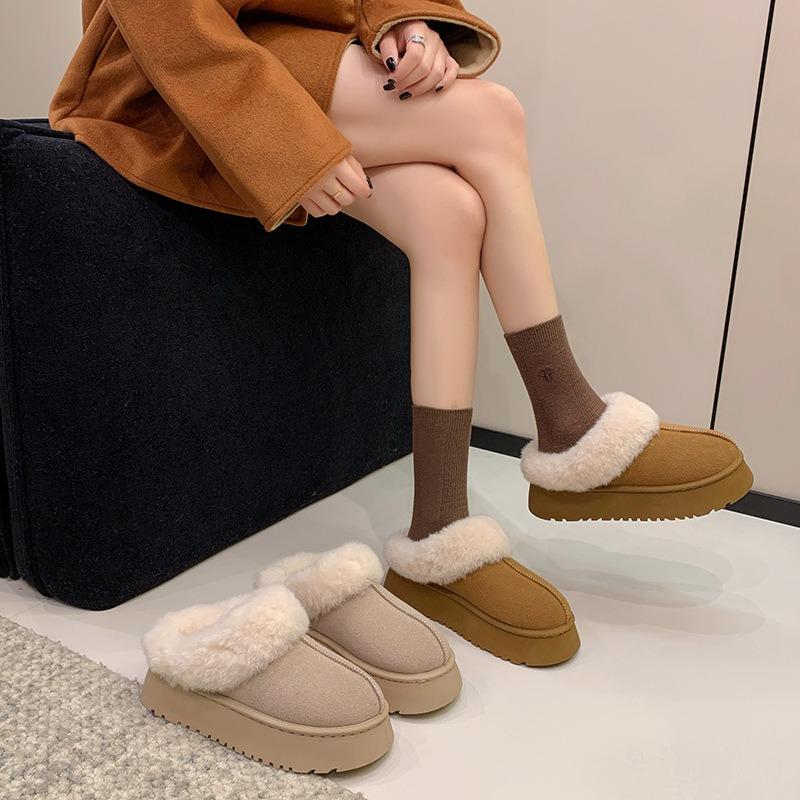Fashion fluffy slippers women's new autumn and winter snow boots thick-soled piled cotton slippers