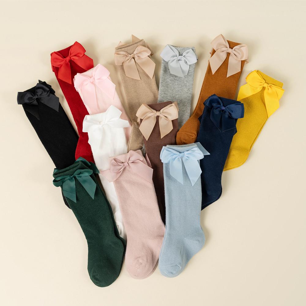 Șosete pentru bebeluși și copii mici de marcă nouă, toamnă iarnă, șosete lungi până la genunchi pentru copii fete, bumbac cu fundă mare, stil spaniol, șosete de podea pentru copii