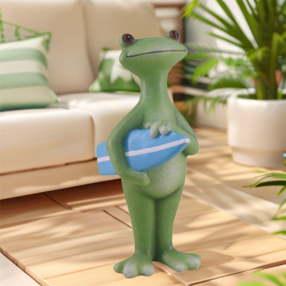 Animal Model Resin Vacation Frog Statue Cute Style Funny Surfing Frog Statue Handmade Swimming Frog Figurine Home Decor