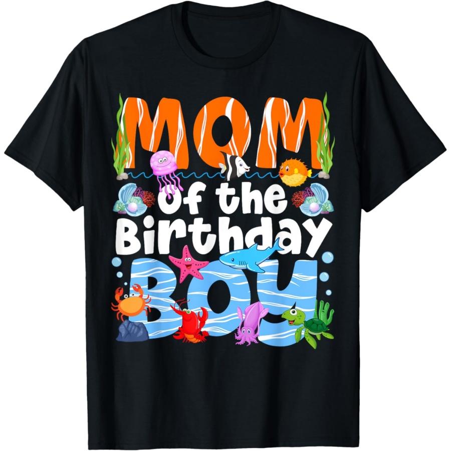 Mom Under Sea Birthday Party Boys Ocean Sea Animals Themed T-Shirt(1)
