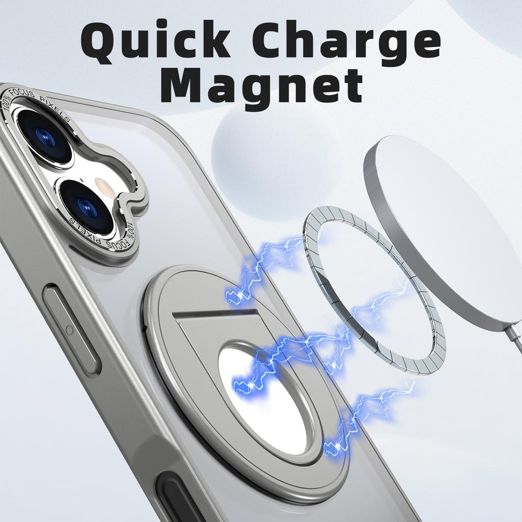 For iPhone 17 Clear Back Case Rotating Kickstand TPU+PC Phone Cover Compatible with MagSafe