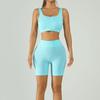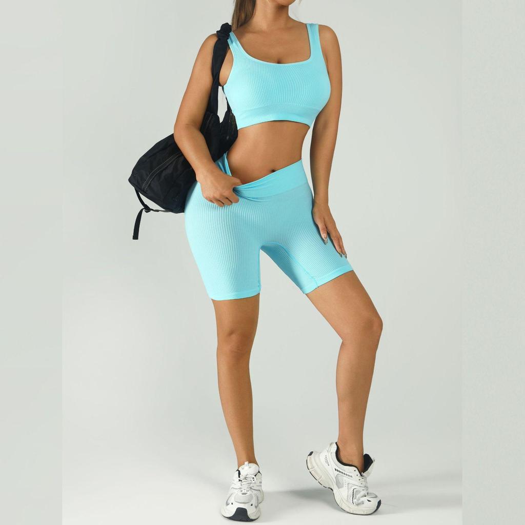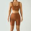 Ribbed Band Outerwear: Tight-Fit Bra & High-Waisted Sports Shorts Yoga Set with Chest Pads - Quick-Dry Peach Fitnesswear.