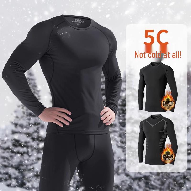 Set de lenjerie termică de iarnă pentru bărbați, cu fleece interior și efect de compresie - cu mânecă lungă, cu uscare rapidă, pentru alergare, antrenament, schi și sporturi de fitness.