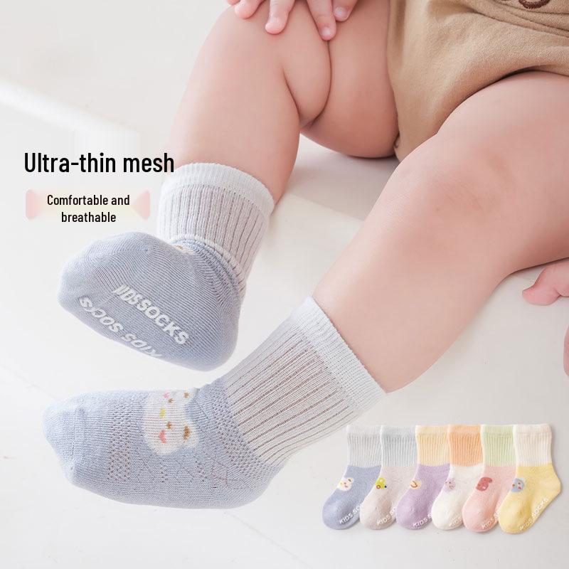 Non-slip Summer Mesh Baby Socks – Seamless, Lightweight, Loose Cuff, Class A Cotton