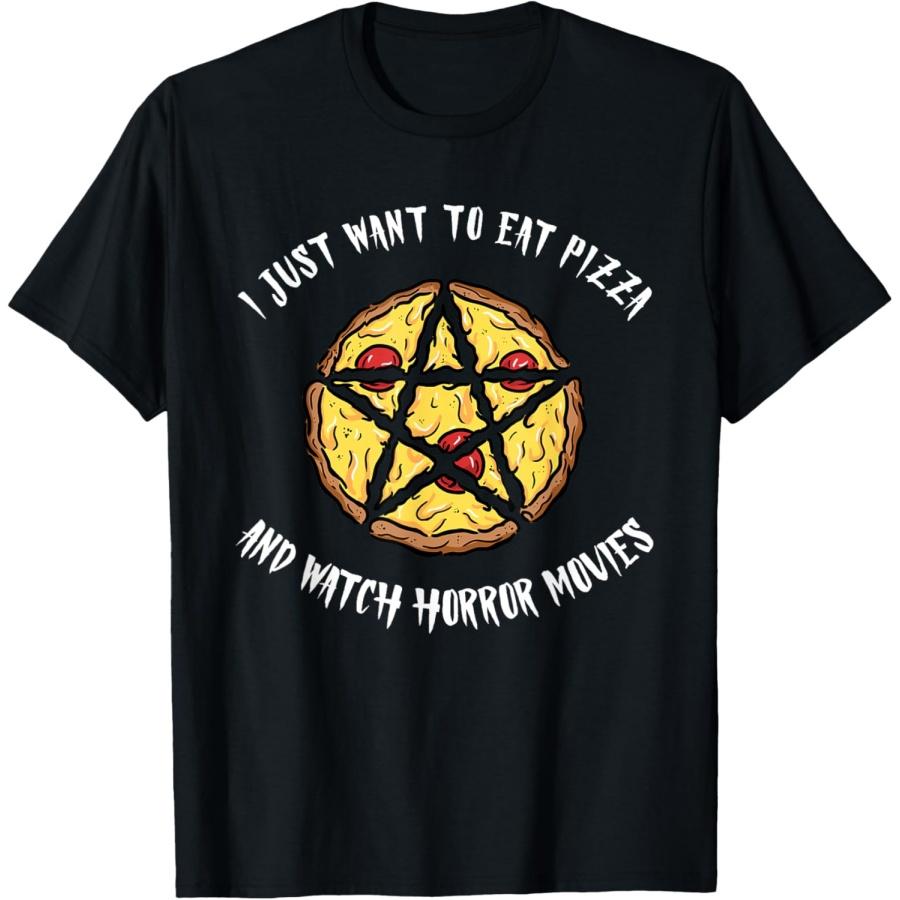 I Just Want To Eat Pizza And Watch Horror Movies Spooky Cult T-Shirt