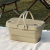 *) Coș de picnic 3 în 1 cu masă. Capacul coșului de picnic poate fi folosit ca o măsuță mică și o tavă pentru poală.. Designul suportului de pahar și al suportului pentru tabletă de pe masă este perfect pentru călătoria dumneavoastră.. Coșul de picnic poate fi folosit ca cutie de depozitare, chiuvetă, cadă, frigider, lighean și găleată.