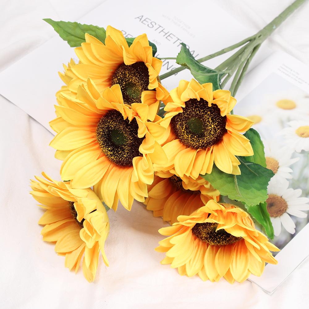 5/7/22 Heads Decorative Real Touch Home Decor Fake Flores Bouquet Silk Sunflower Artificial Flower Wedding Decoration