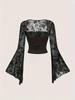 Bluză Vintage Gotic Victoriană Japoneză Neagră cu Mânecă tip Felinar și Volane Harajuku Y2K Punk Streetwear Cosplay