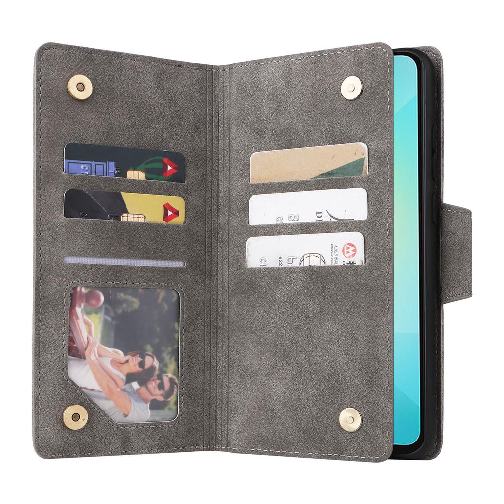 Phone Case For Samsung Galaxy A07 4G/A06 4G/A06 5G Zipper Wallet Rivet Decor Leather Cover with Wrist Strap