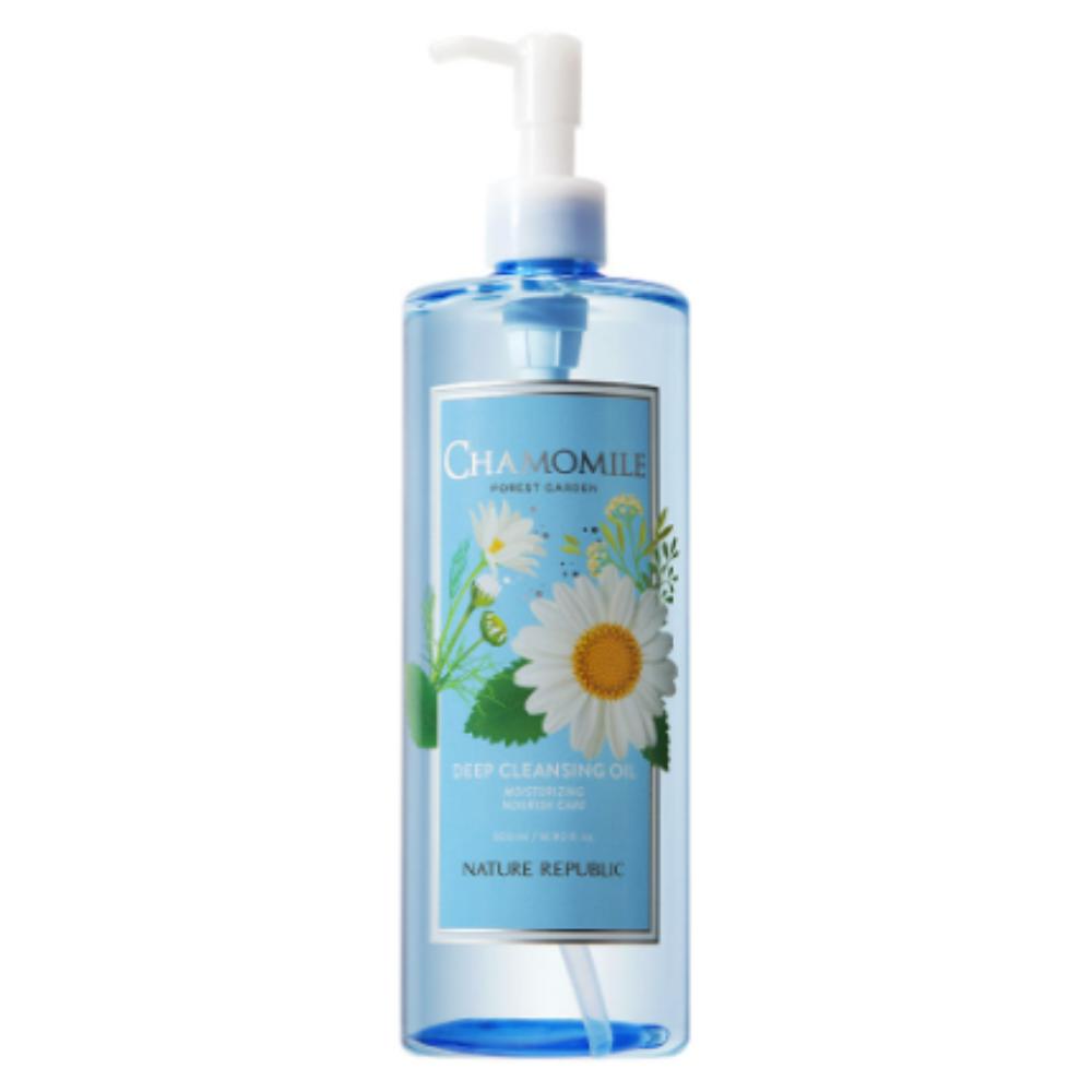 SEO Keywords: Nature Republic cleansing oil, Chamomile facial oil cleanser, Korean deep cleansing oil, sebum control oil, blackhead removal oil, 500ml cleansing oil, sensitive skin face cleanser, makeup remover oil, K-beauty double cleanse, Forest Garden Chamomile.