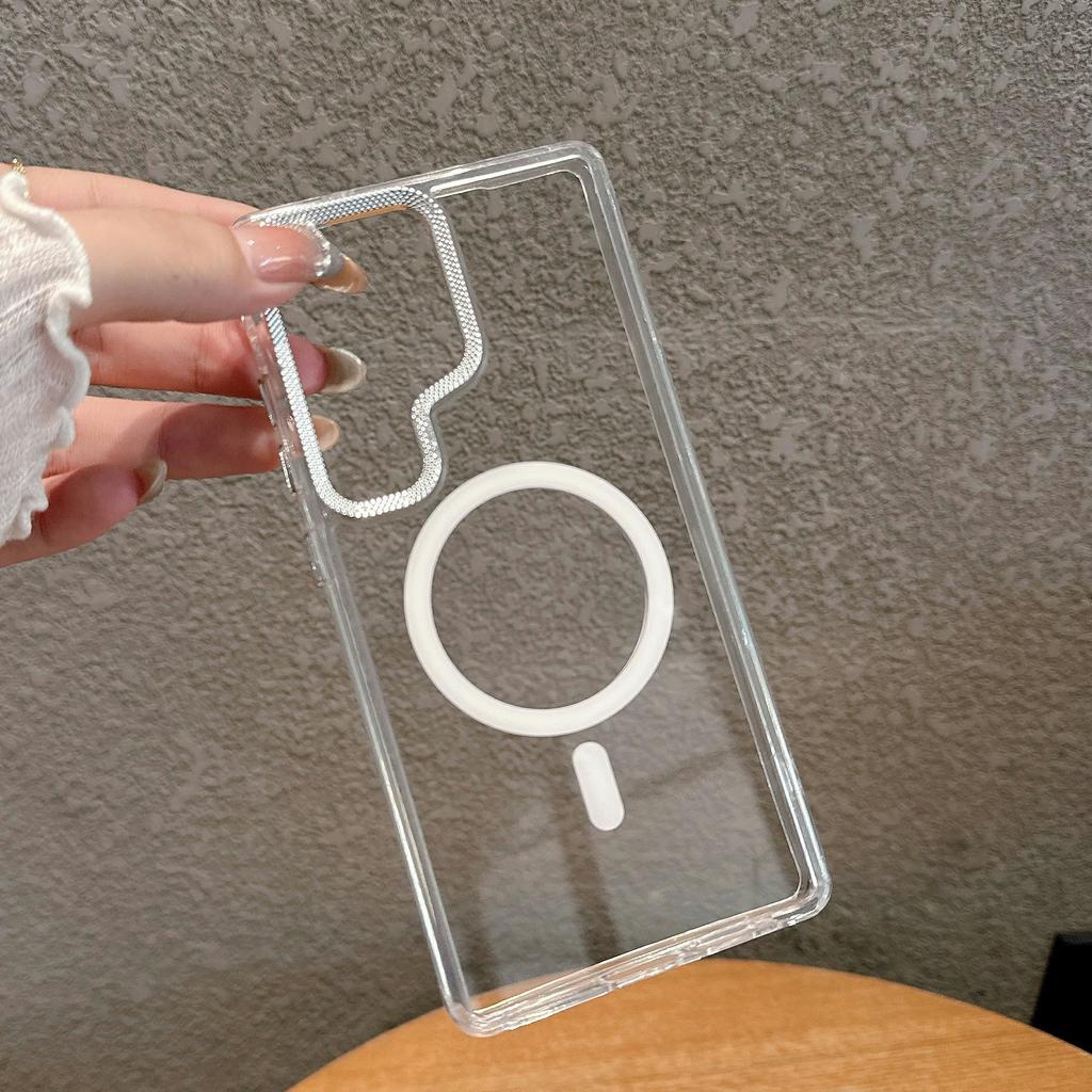 For Samsung Galaxy S23 Ultra Magnetic Case PC + TPU Clear Phone Cover with Diamond Texture Lens Frame