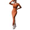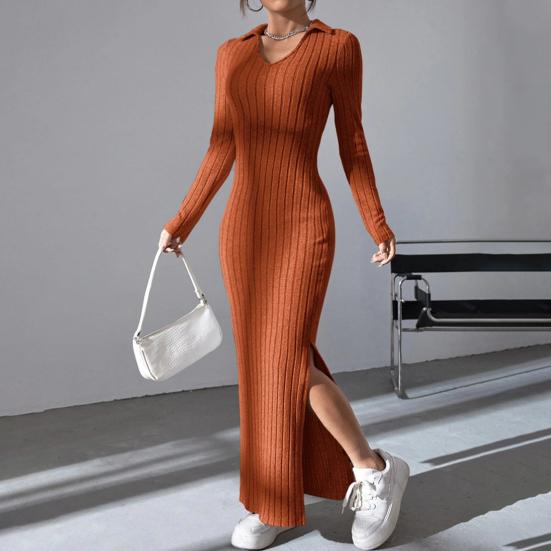 Rochie de primăvară de toamnă pentru femei, cu decolteu în V, cu tiv cu tăietură, cu mâneci lungi, până la gleznă, tricotată, elastică, rochie de petrecere pentru cumpărături