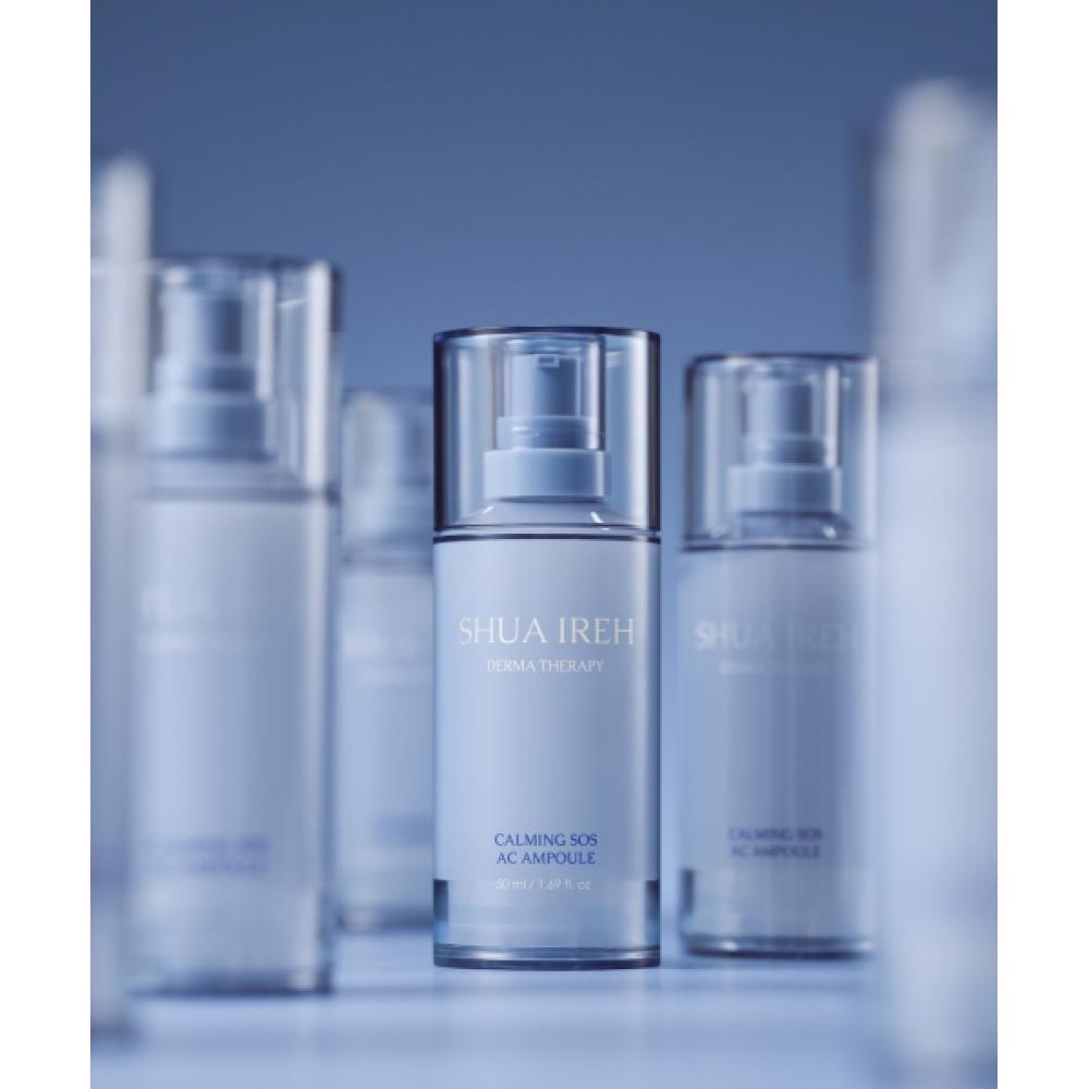 SHUAIREH Calm SOS Arc Ampoule (50ml) is a hydrating ampoule that absorbs quickly into the skin without stickiness, ideal for calming the skin and suitable for acne-prone skin. This product offers skin calming, regeneration, and moisturizing benefits, having completed six clinical tests. It contains Guaiaculen, Salicylic Acid, and Tea Tree Leaf Oil that provide exfoliation and heat-stimulation soothing effects.