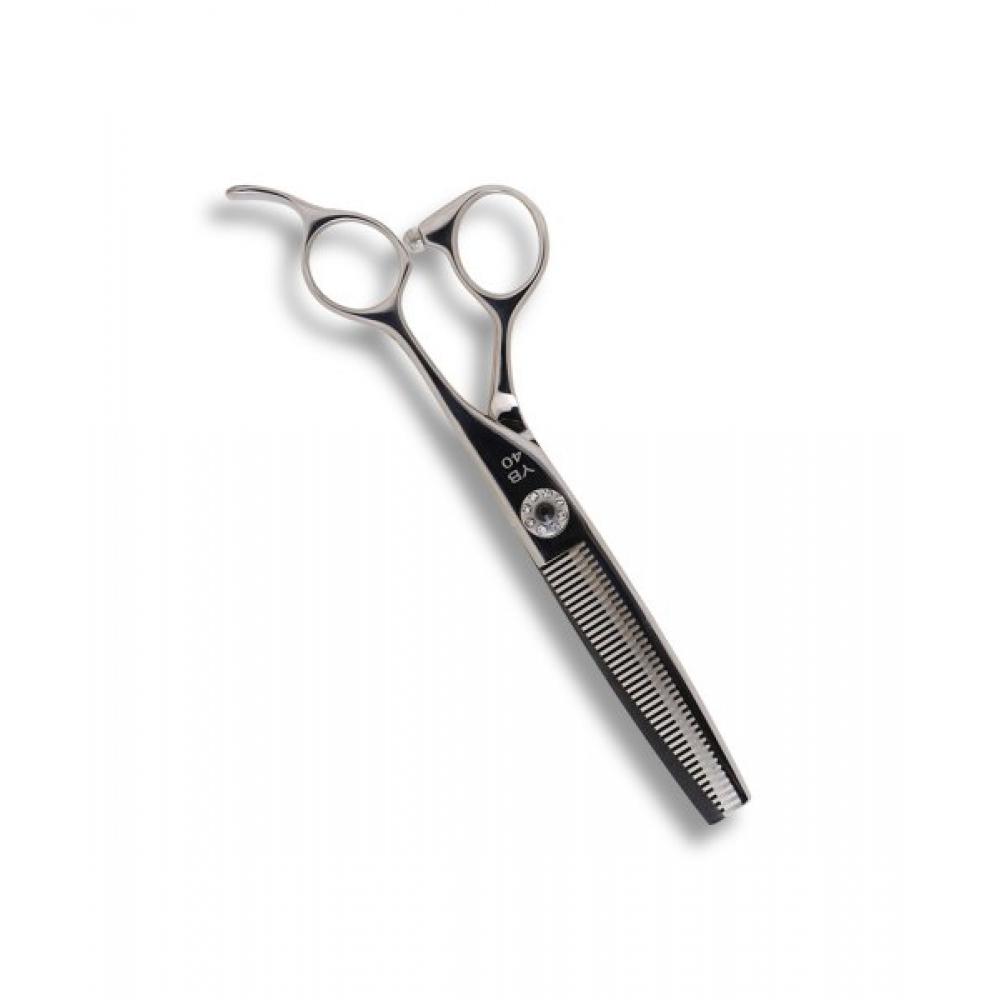 YESBEAUTY Scissor Craftsman's Made Domestic Premium Professional Salon Hair Cutting Scissor Thinning Scissor YB-40 + Storage Pouch is a high-quality beauty tool manufactured in Korea, designed for use in professional salons. This product is crafted by a scissor artisan, offering precise cutting and is perfect for hair layer cuts and volume adjustments. Made of premium stainless steel, it boasts exceptional durability and a unique design with a comfortable grip.
