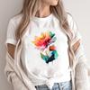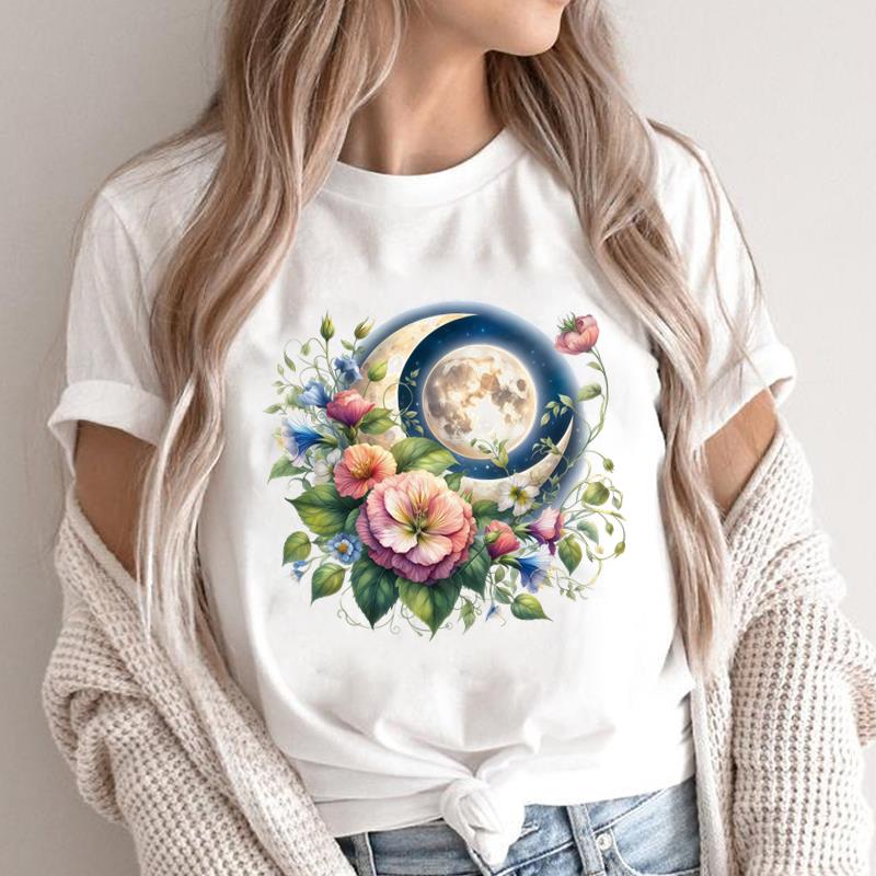 (Asian Size) lovely flower style 90s O-neck Short Sleeve T-shirts Print Casual Top T Graphic Tee Fashion Female Women's Clothing