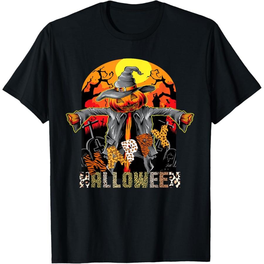 Scary spooky Halloween pumpkin scarecrow women men T-Shirt(1)
