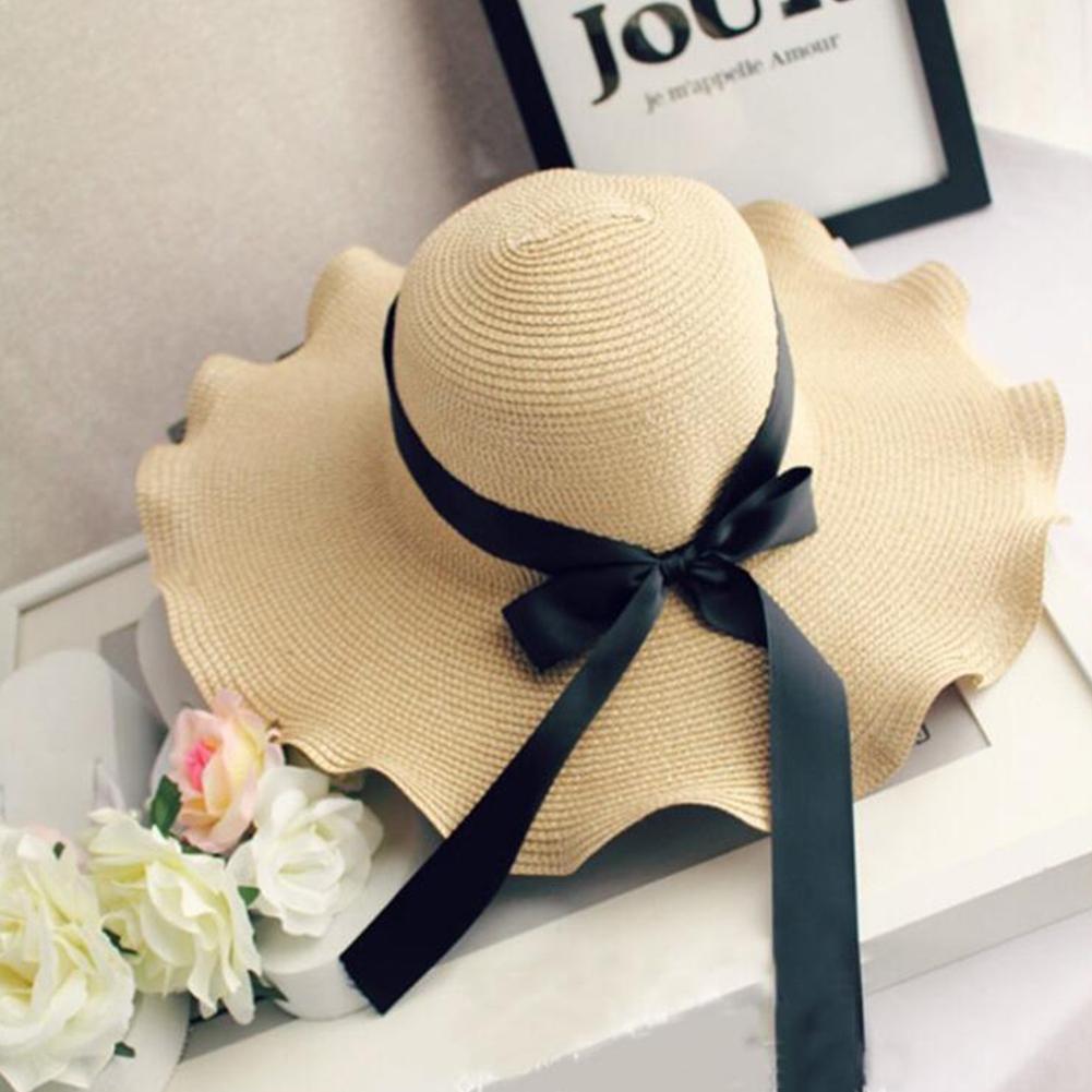 Women Concise Elegant Foldable Bowknot Straw Sun Hat