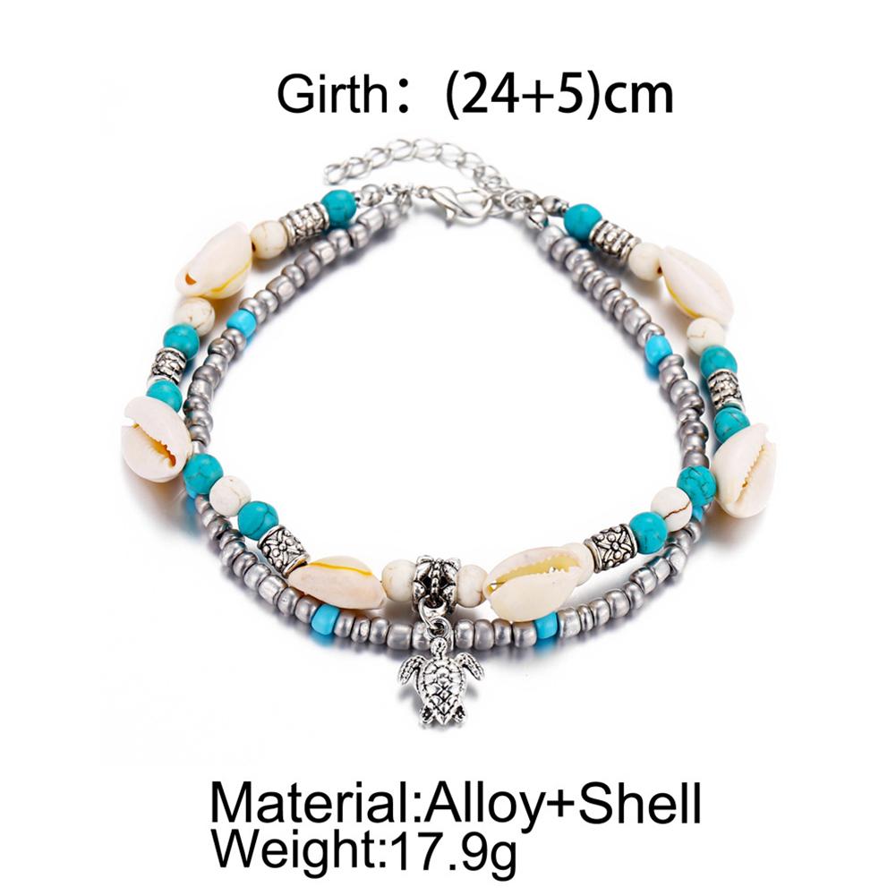 Fashion Bohemian Shell Turtle Pendant Double Layers Anklets