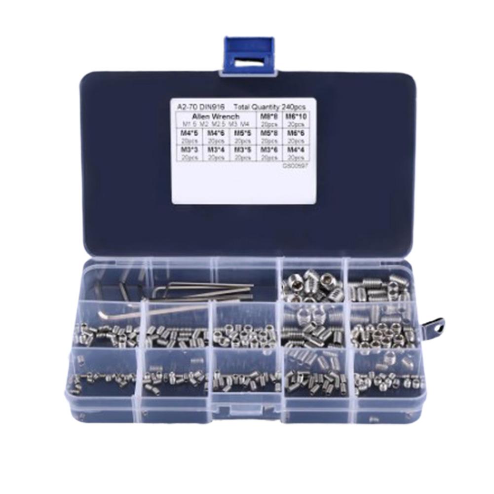 240pcs 304 Stainless Steel M3///M6/M8 Hex Socket Set Screws Assortment Kit