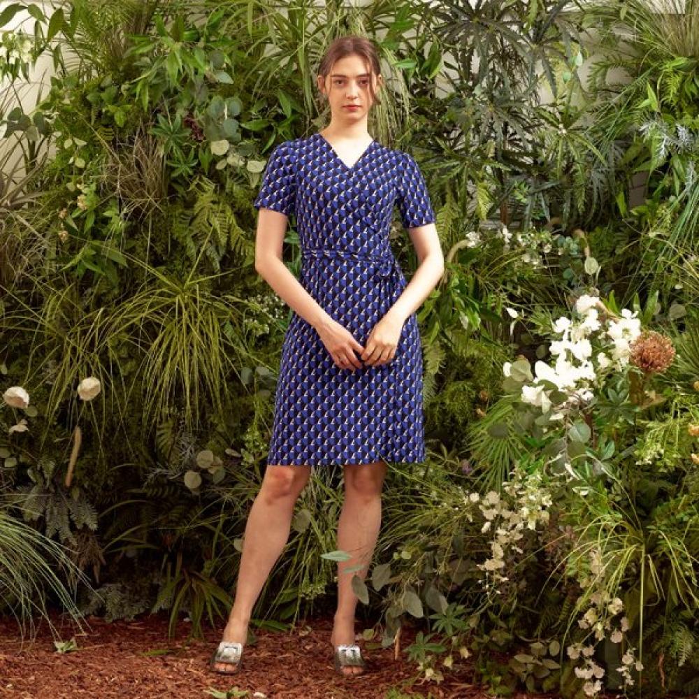 The Lipbbam Cleora Leoni Midi Wrap Dress LDM03DJ01 features a midi-length wrap design and is suitable for daily office wear or formal events. The wrap design enhances body shape.