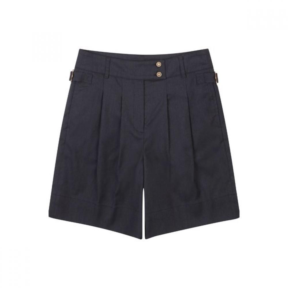 The ONOFF Women's Cotton Blend Wide Fit Shorts OF5703LA_BLACK offers comfortable wear and a stylish fit. Made from a blended fabric that emphasizes stretch and breathability, it is ideal for golf wear. The black color allows for versatile matching with various tops, making it suitable for a casual golf look.