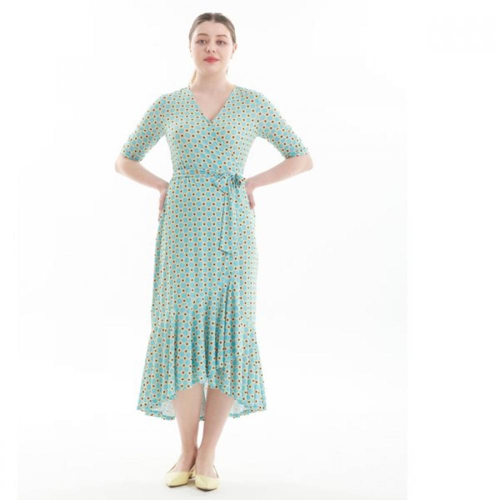 The Lipbam Creora Vivienne Frill Wrap Dress features a feminine frill detail and 3/4 sleeve design. This wrap-style dress adds elegance and is suitable for various occasions. It is perfect for those seeking comfort along with stylishness.