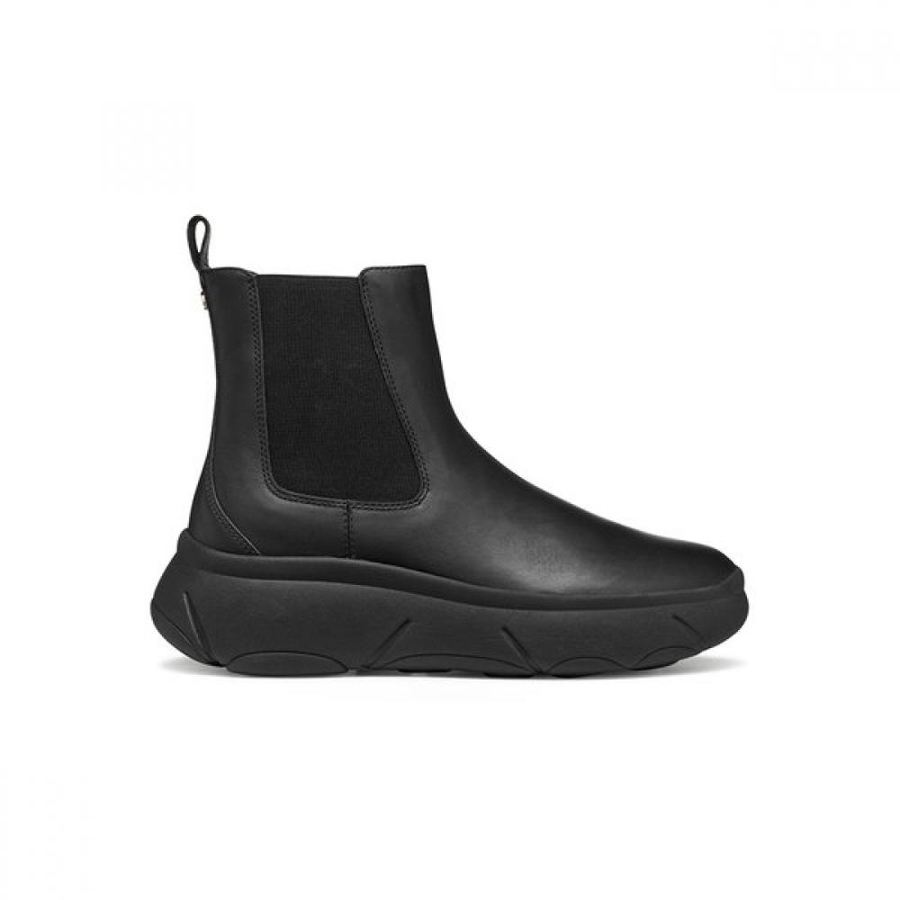 The GEOX Women's Comfort Chunky Chelsea Ankle Boots Black Nebula 2.0X is a sleek and understated chunky chelsea boot. It is easy to wear with a side rubber pull tab and offers comfort through the chunky outsole that provides support in the forefoot and heel. Boasting Geox's breathable technology, it maintains ventilation and effectively expels moisture.
