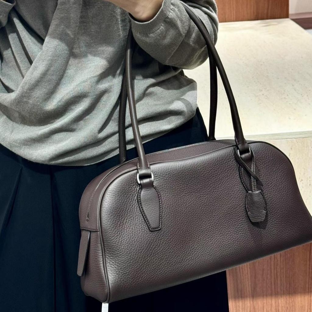Old money wind India bowling bag long handle underarm bag first layer cowhide leather shoulder bag women