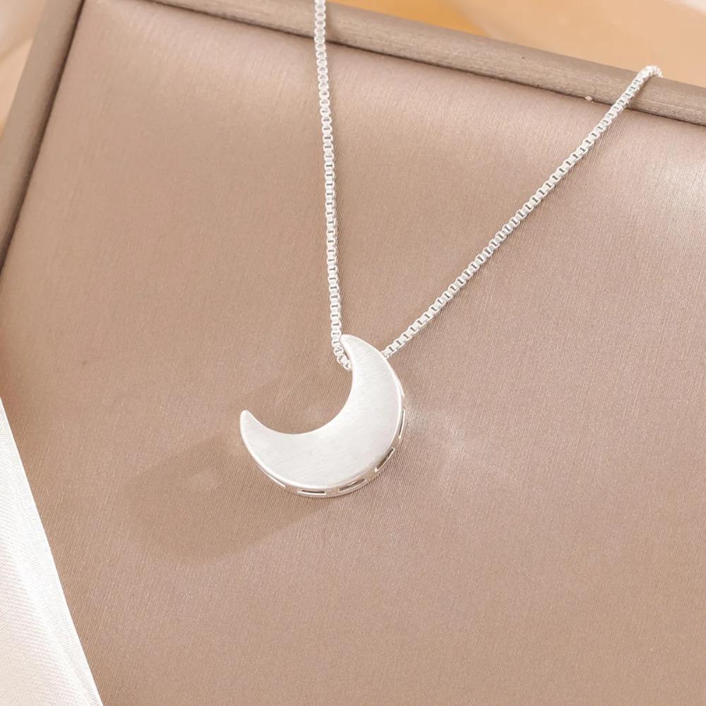 925 Silver Brushed Crescent Moon Pendant Necklace Simple Fashion Jewelry Gift for Women XL047