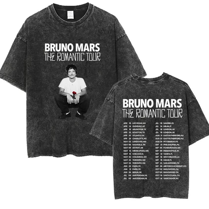 Bruno Mars The Romantic Tour 2026 Tricouri Vintage Spălate Bărbați Femei Modă Punk Gotic Bumbac Mânecă Scurtă Tricou Streetwear