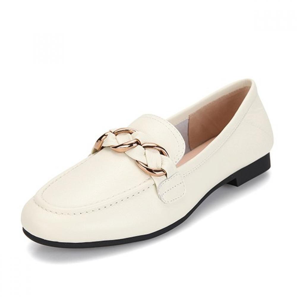 Mocasinii Babara pentru femei, cu o lățime de 1,5 cm, au o elegantă decorațiune cu lanț auriu și un toc de 1,5 cm, confecționați din piele de miel.. Acest design creează o atmosferă ordonată, dar confortabilă, făcându-l potrivit atât pentru stiluri semi-casual, cât și business casual.
