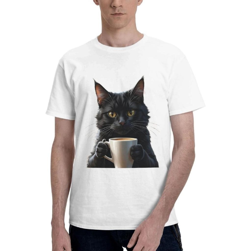 Coffee Cat Short Sleeve T-Shirt Merchandise Classic Fit Crew Neck Man(1)