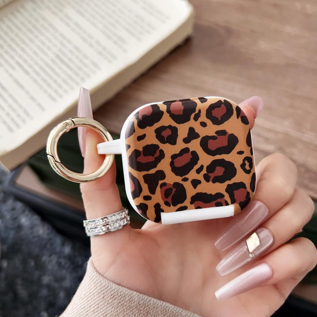 For AirPods 4 Protective Case PC + TPU Leopard Earphone Cover with Mirror and Hook