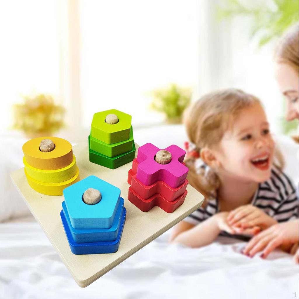 Wood Shape-Sorting Geometric Stacker Building Blocks Educational Cognitive for Toddler Kids Children