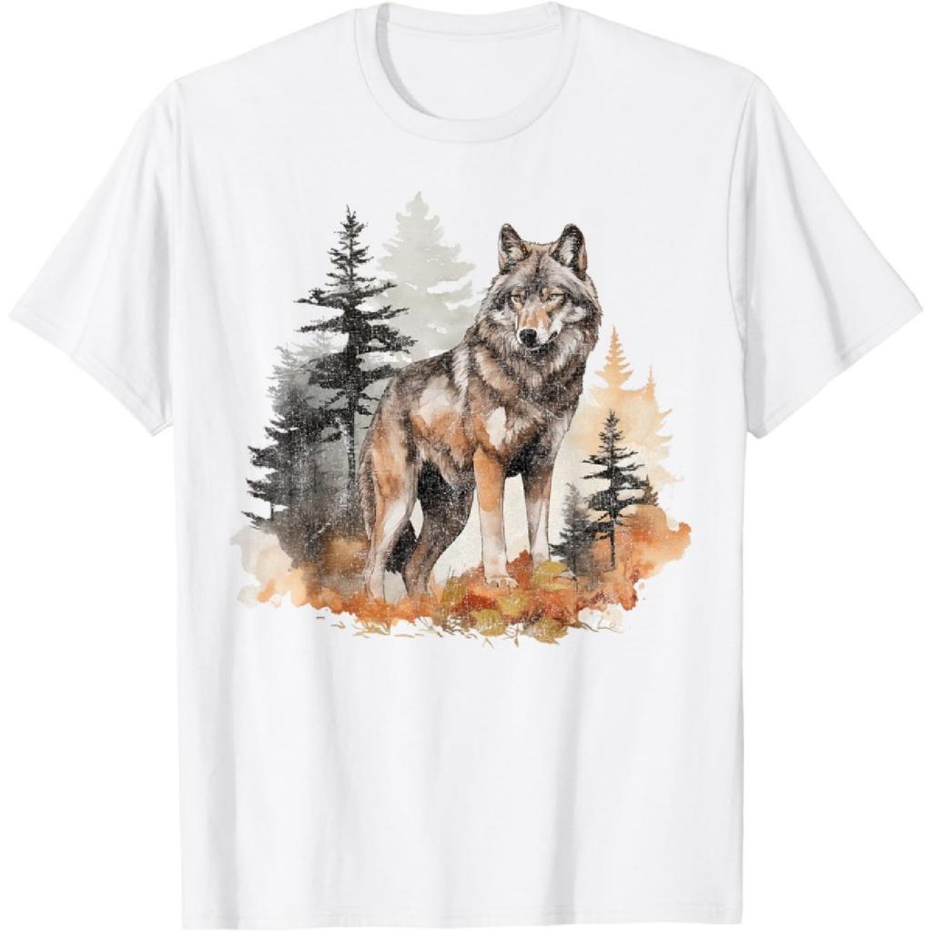 Wolf Survives Mountain Silhouette Art Lone dog T-Shirt for Men Women(2)