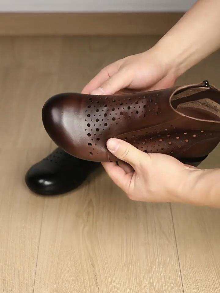 Johnature Pantofi de damă respirabili cu decupaje Piele naturală Confortabili Talpă moale Stil retro Cizme de vară