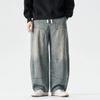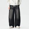 2026 Spring Men Black Denim Pants Men Vintage Elastic Waist Jeans Pants Male Hip Hop Wide Leg Pants Man Cotton Baggy Trousers