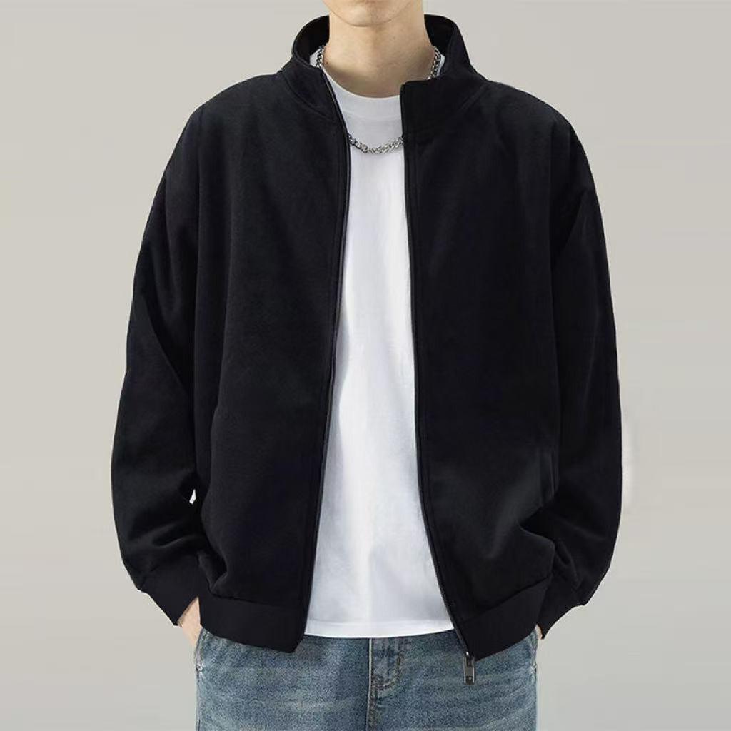 Men's Retro Stand Collar Zipper Cardigan Hoodie - American Style, Spring/Autumn, High-End, Wear-Resistant Jacket