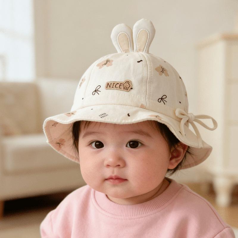Adorable Baby Rabbit Bucket Hat - Lightweight Spring/Summer Sun Protection for Girls