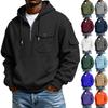 European Heavyweight Waffle Long Sleeve Hooded Sweatshirt - Men's Loose Fit, Pure Color, Casual Style