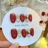 Instantly Rich Red Handmade Press-On Nails: Elegant Wedding & Festive New Year Nail Art for a Beautiful Complexion.