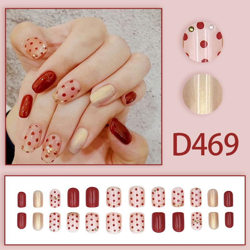 High-End Red Polka Dot Retro Whitening False Nail Tips