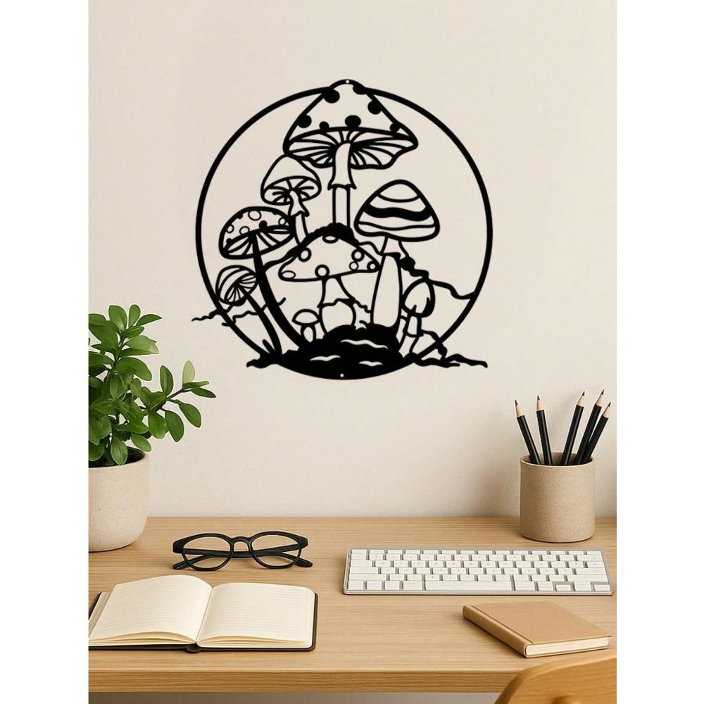 Round Iron Wall Decor with Black Floral Design for Living Room Bedroom Home Decoration Gift