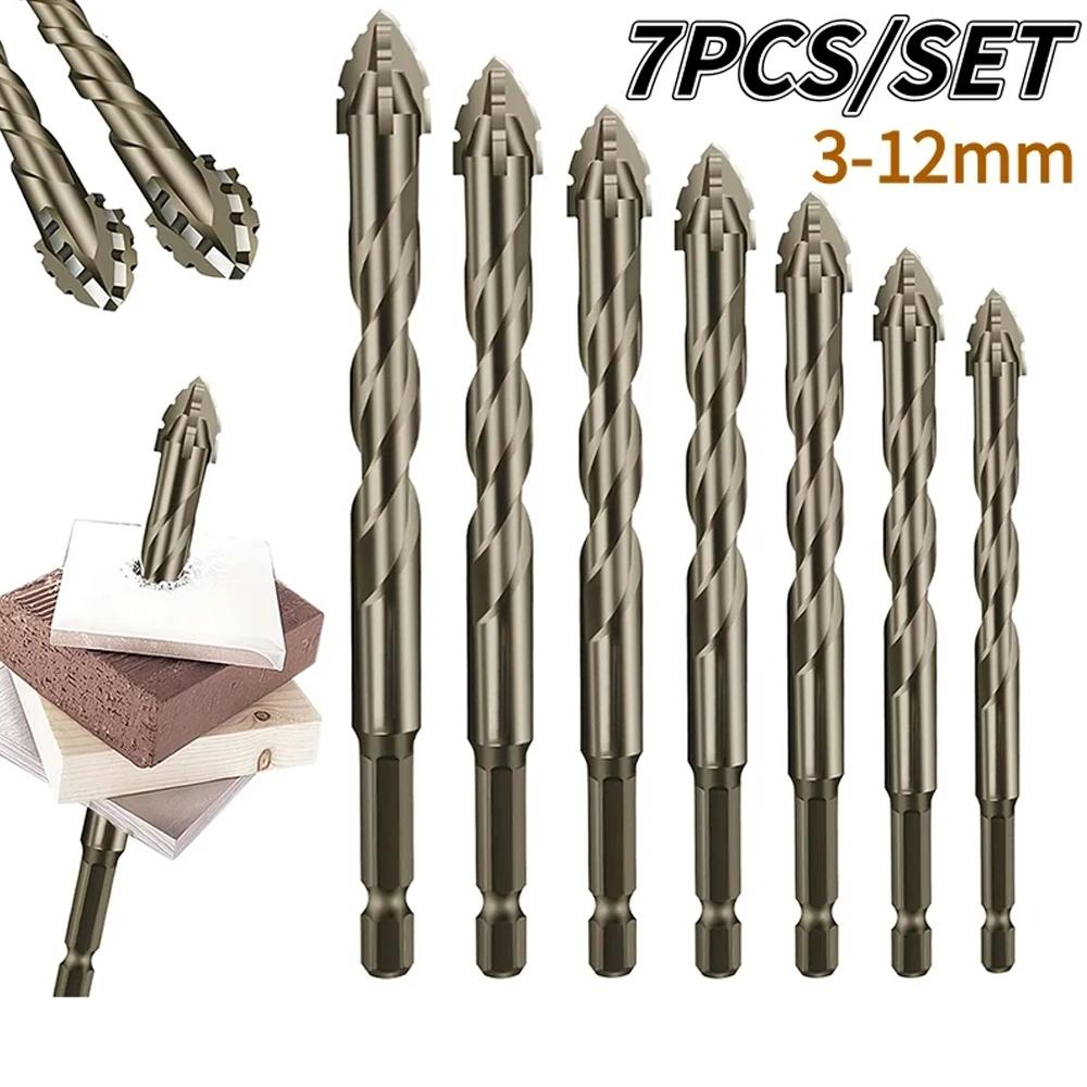 7Pcs/set Four Flute Sawtooth Drill Bit For Glass Tile Concrete Metal Drilling Tools High Performance Drill Bit Set 3-12mm New