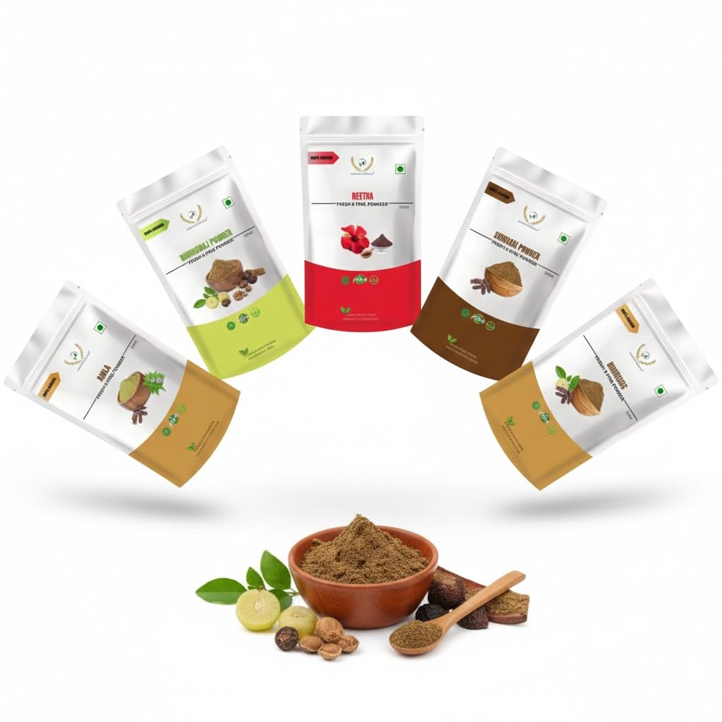 5-in-1 Hair Care Combo - Amla, Reetha, Shikakai, Bhringraj & Hibiscus Powder (5 x 50g) - Dandruff & Scalp Nourishment - 250g Total
