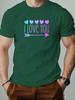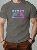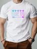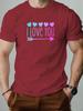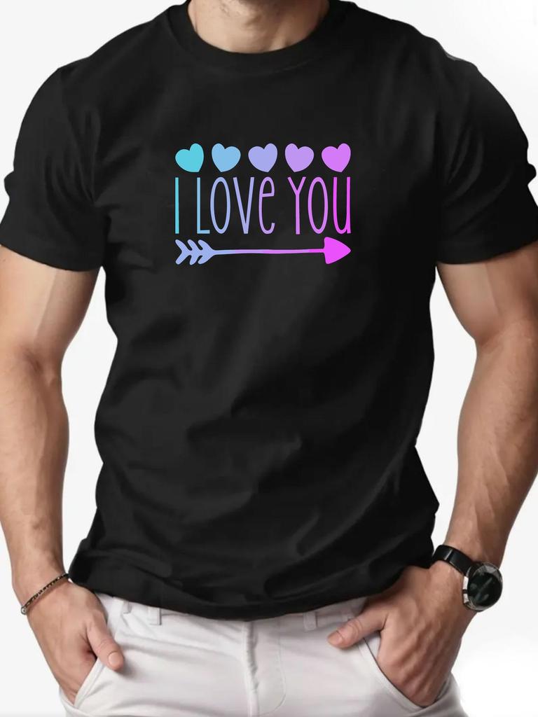 Mens cotton Tshirt love pattern I LOVE YOU summer casual round neck short Tshirt