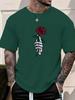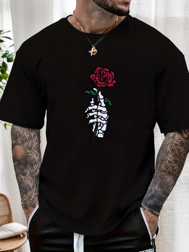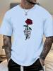 2025 Summer Essential Mens Tee Edgy Artistic Vintage Inspired Goth Skeleton Hand Rose Print 100 Cotton Short Sleeve Casual Top