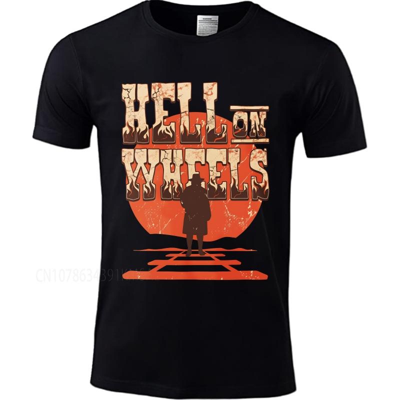 Brand summer For man tshirt Hell On Wheels Western Train Silhouette Short Sleeve Adult ONeck tops summer cotton men tshirt