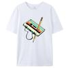 Cassette Tape Pencil Pattern Print Short Sleeve Retro Vintage Throwback Music TShirt Women Daily Versatile Round Neck Top